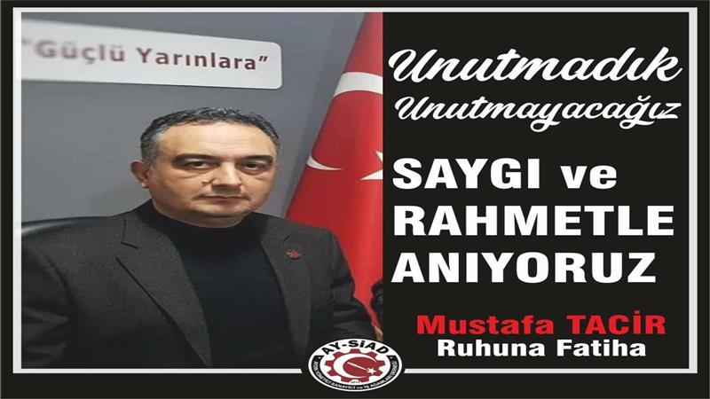 24 Eylül 2025 Merhum Başkanımız Mustafa Tacir’i vefatının yıldönümünde rahmetle anıyoruz.... Merhum Başkanımız Mustafa Tacir’i vefatının yıldönümünde rahmetle anıyoruz. ... Haber Detayları